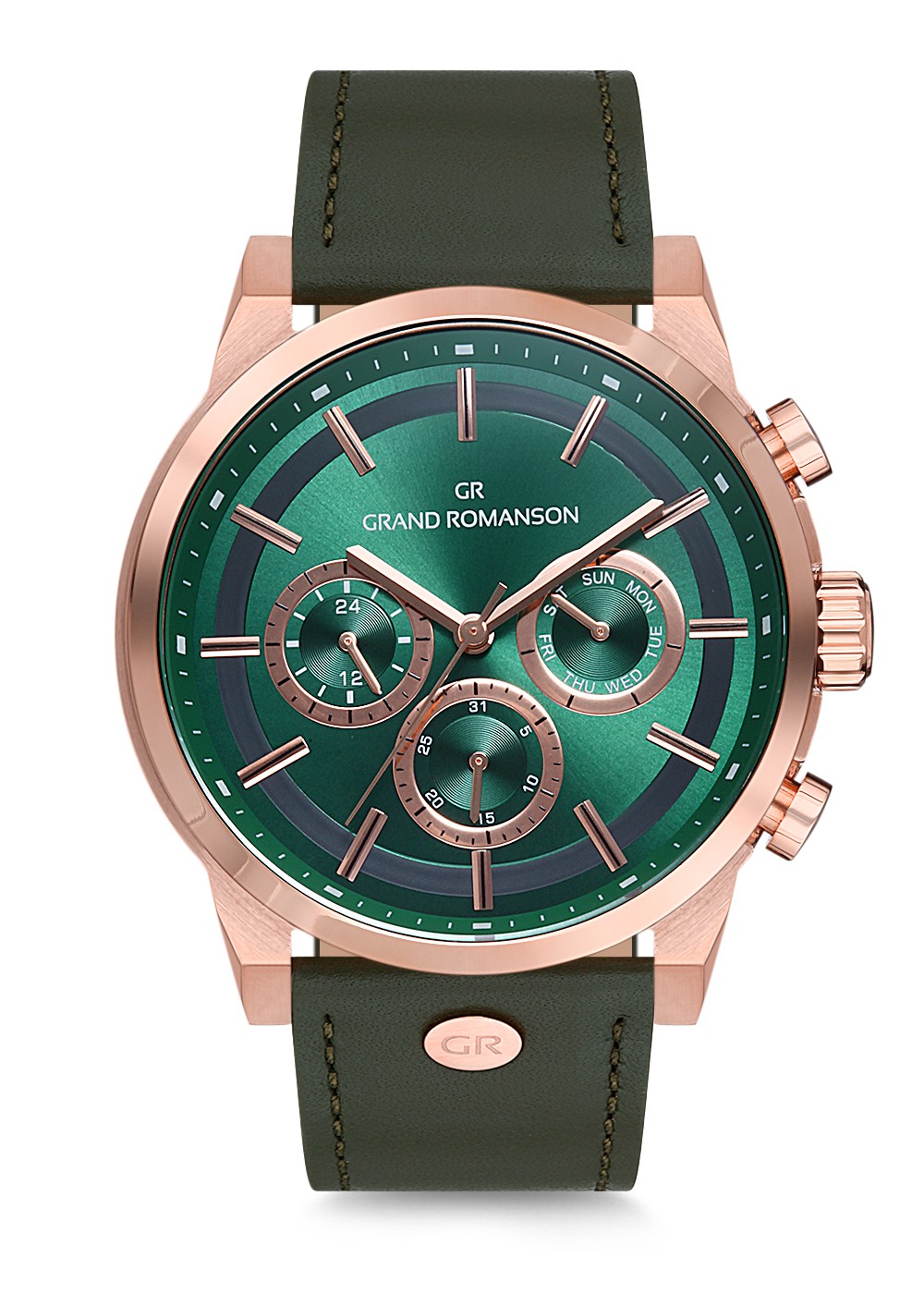 Erkek - Kronometre - Rose - Yeşi̇l - Doğal Deri̇ Kordon - Yeşi̇l - 3 Atm - Sertleşti̇ri̇lmi̇ş Mi̇neral Cam - Grand Romanson