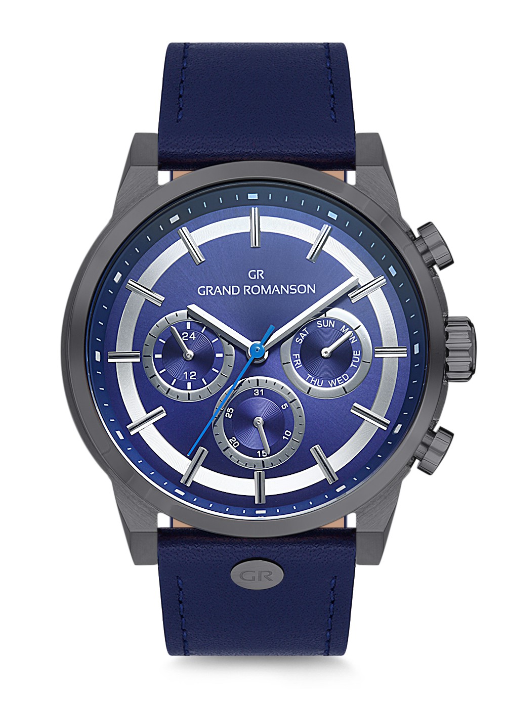 Erkek - Kronometre - Gun - Mavi̇ - Doğal Deri̇ Kordon - Mavi̇ - 3 Atm - Sertleşti̇ri̇lmi̇ş Mi̇neral Cam - Grand Romanson