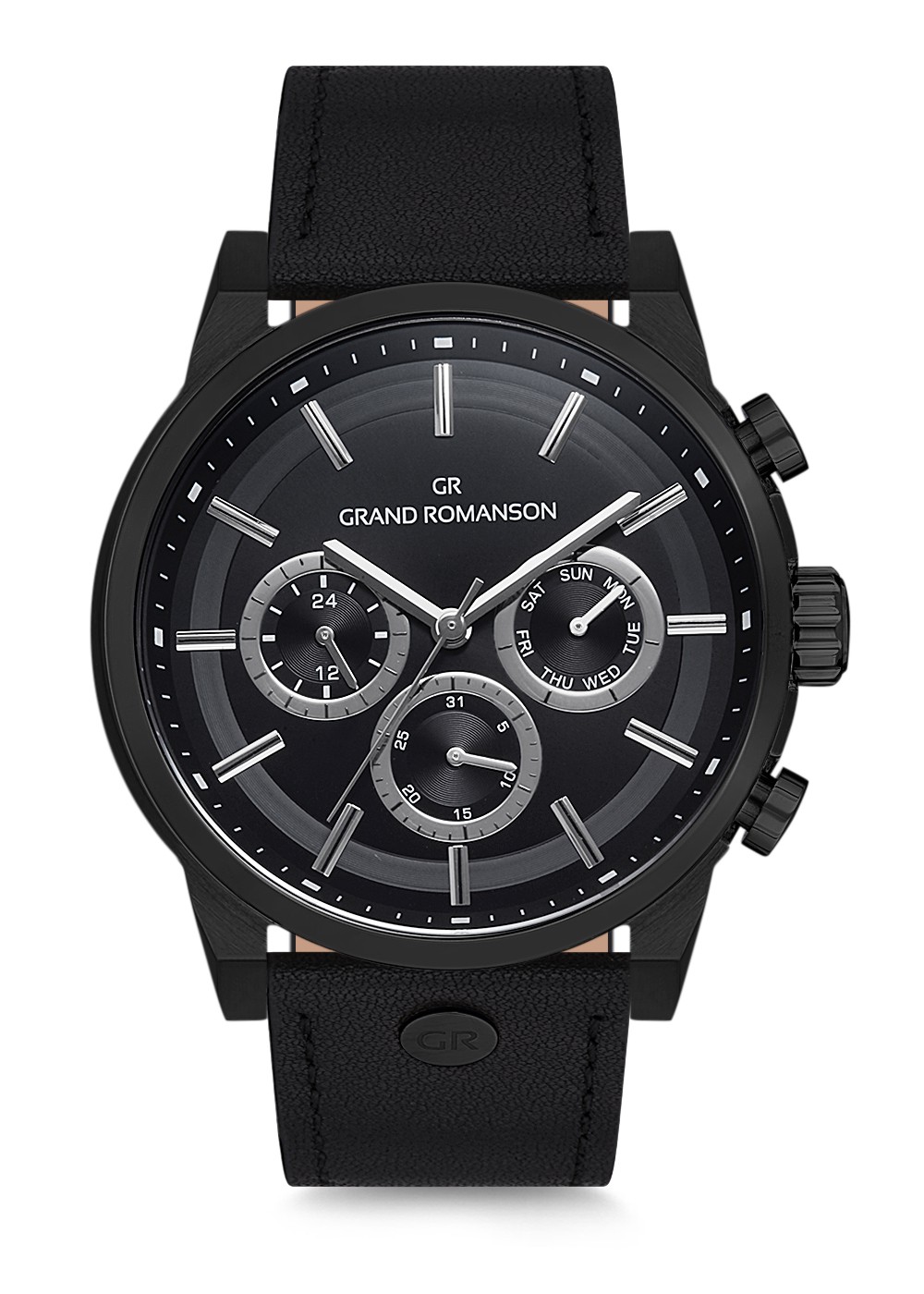 Erkek - Kronometre - Si̇yah - Si̇yah - Doğal Deri̇ Kordon - Si̇yah - 3 Atm - Sertleşti̇ri̇lmi̇ş Mi̇neral Cam - Grand Romanson