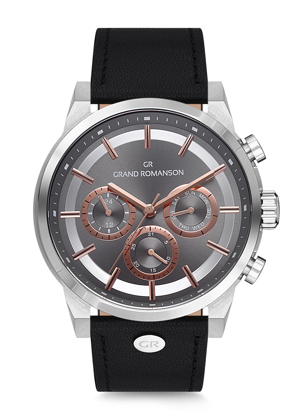 Erkek - Kronometre - Gümüş - Gri̇ - Doğal Deri̇ Kordon - Si̇yah - 3 Atm - Sertleşti̇ri̇lmi̇ş Mi̇neral Cam - Grand Romanson