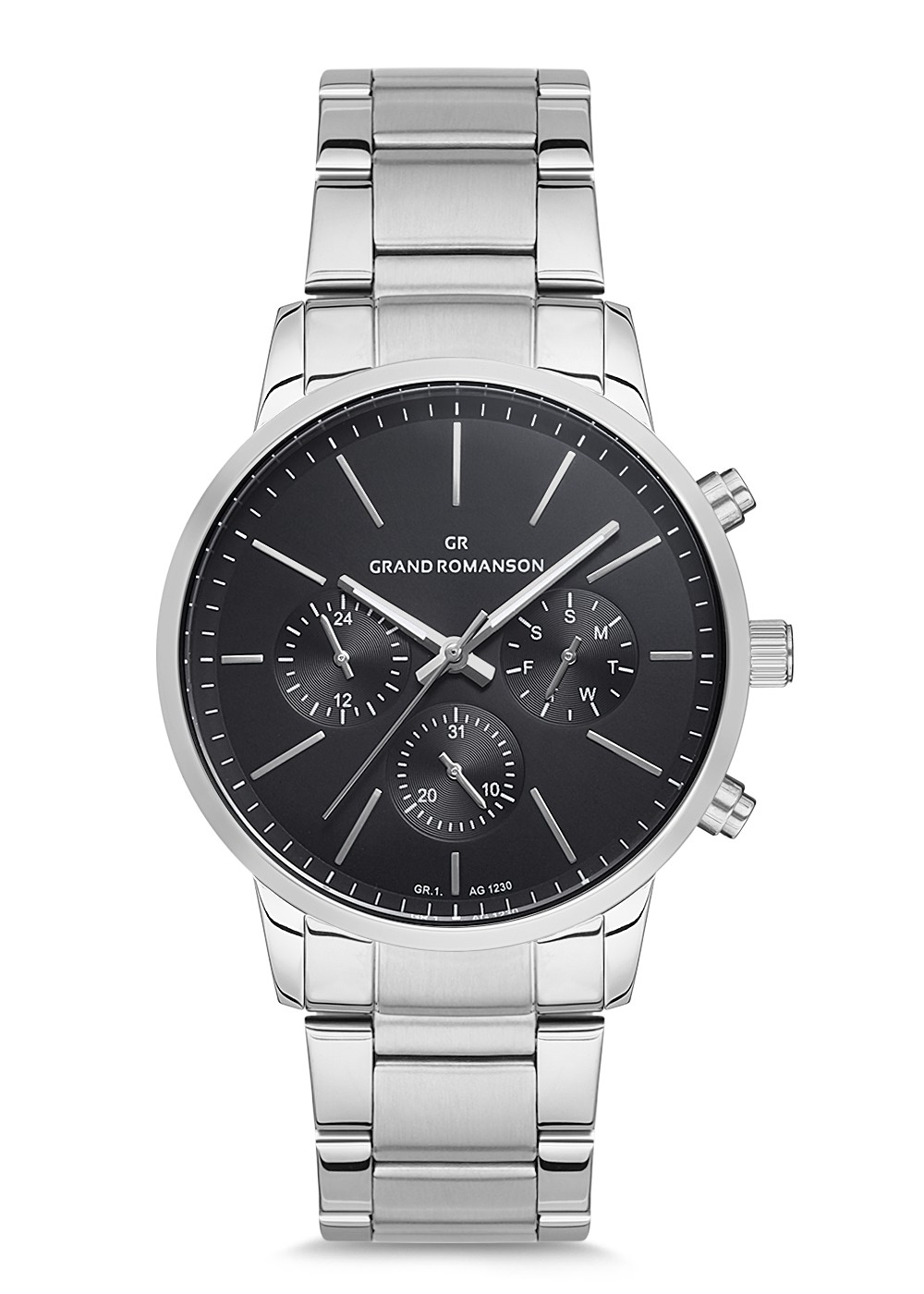 Erkek - Kronometre - Gümüş - Si̇yah - Paslanmaz Masi̇f Çeli̇k - 3 Atm - Sertleşti̇ri̇lmi̇ş Mi̇neral Cam - Grand Romanson