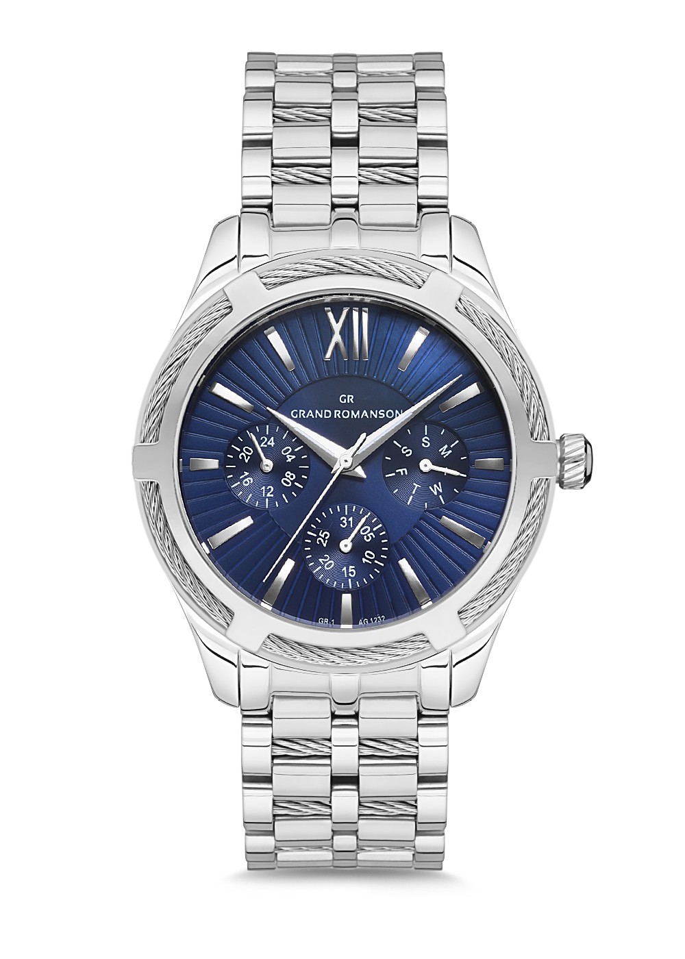 Erkek - Kronometre - Gümüş - Mavi̇ - Paslanmaz Masi̇f Çeli̇k - 3 Atm - Sertleşti̇ri̇lmi̇ş Mi̇neral Cam - Grand Romanson