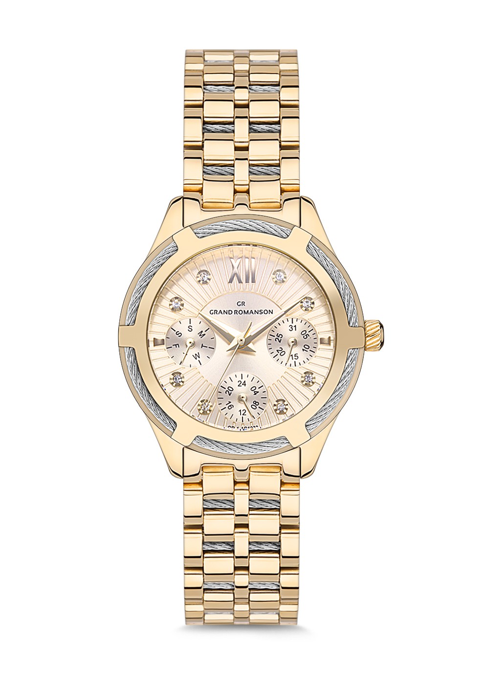 Kadın - Kronometre - Sari - Sari - Paslanmaz Masi̇f Çeli̇k - 3 Atm - Sertleşti̇ri̇lmi̇ş Mi̇neral Cam - Grand Romanson
