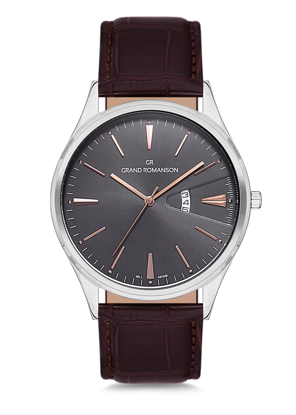 Erkek - Takvi̇mli̇ - Gümüş - Gümüş - Doğal Deri̇ Kordon - Kahverengi̇ - 3 Atm - Sertleşti̇ri̇lmi̇ş Mi̇neral Cam - Grand Romanson