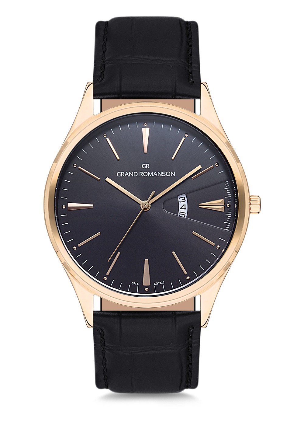 Erkek - Takvi̇mli̇ - Sari - Si̇yah - Doğal Deri̇ Kordon - Si̇yah - 3 Atm - Sertleşti̇ri̇lmi̇ş Mi̇neral Cam - Grand Romanson