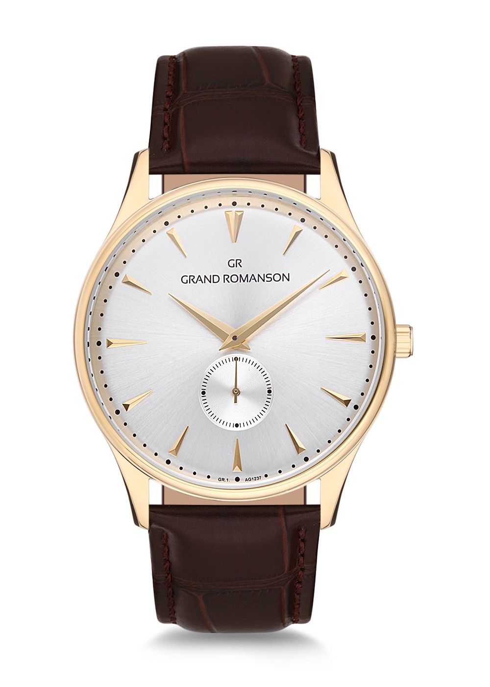Erkek - Alttan Sani̇ye - Sari - Gümüş - Doğal Deri̇ Kordon - Kahverengi̇ - 3 Atm - Sertleşti̇ri̇lmi̇ş Mi̇neral Cam - Grand Romanson