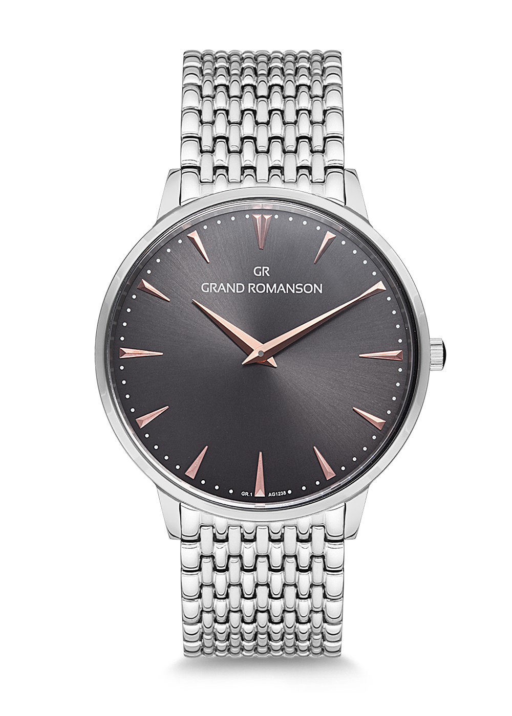 Erkek - Düz - Gümüş - Si̇yah - Paslanmaz Masi̇f Çeli̇k - 3 Atm - Sertleşti̇ri̇lmi̇ş Mi̇neral Cam - Grand Romanson