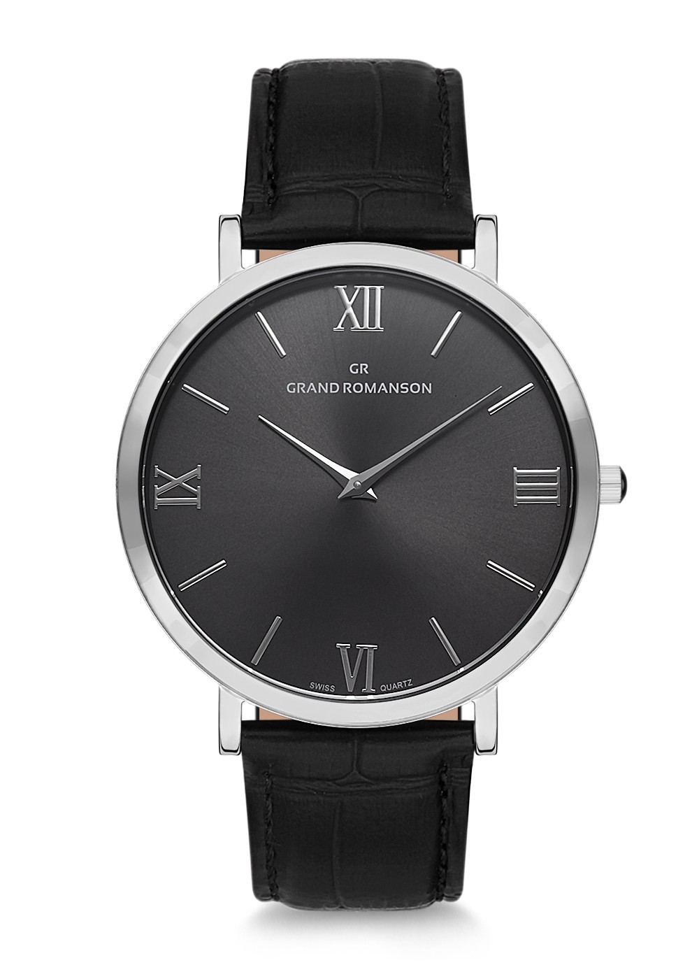 Erkek - Düz - Gümüş - Gri̇ - Doğal Deri̇ Kordon - Si̇yah - 3 Atm - Sertleşti̇ri̇lmi̇ş Mi̇neral Cam - Grand Romanson