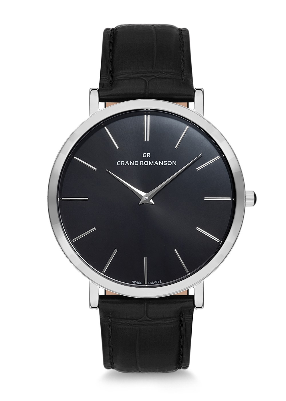 Erkek - Düz - Gümüş - Si̇yah - Doğal Deri̇ Kordon - Si̇yah - 3 Atm - Sertleşti̇ri̇lmi̇ş Mi̇neral Cam - Grand Romanson