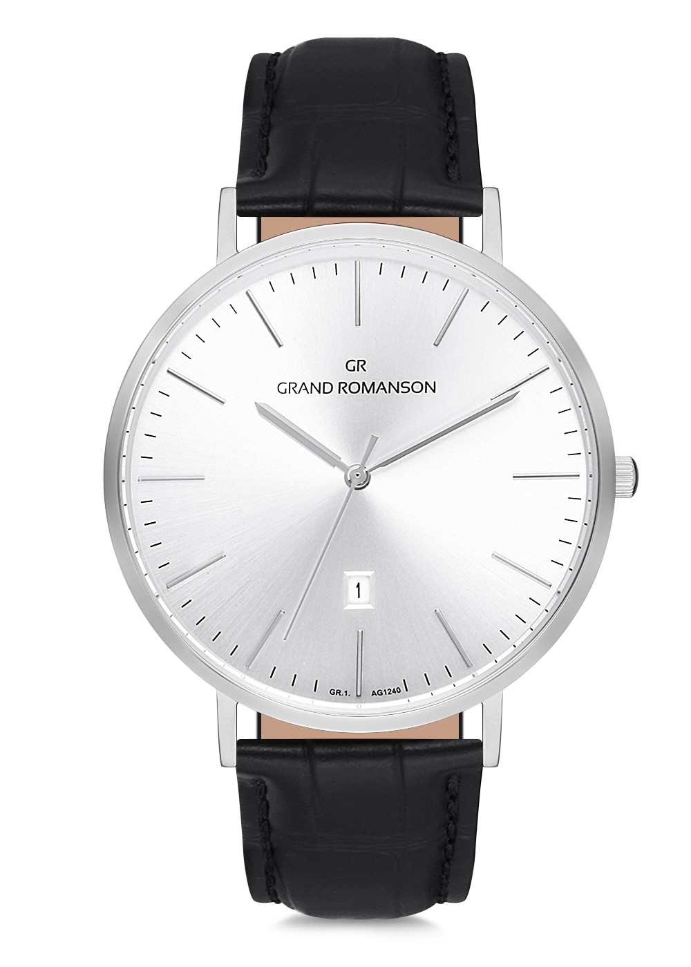 Erkek - Düz - Gümüş - Gümüş - Doğal Deri̇ Kordon - Si̇yah - 3 Atm - Grand Romanson