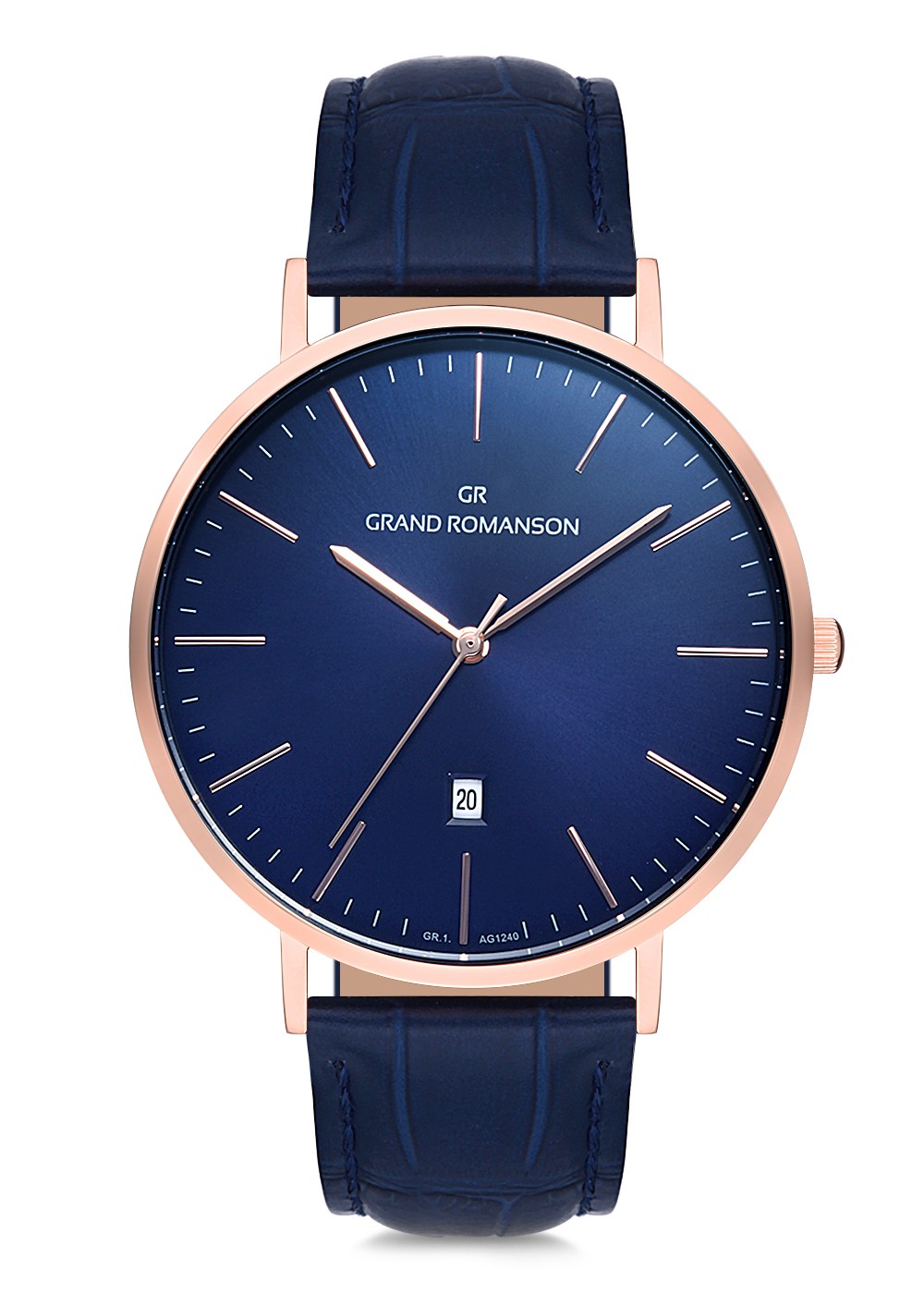 Erkek - Düz - Rose - Mavi̇ - Doğal Deri̇ Kordon - Mavi̇ - 3 Atm - Grand Romanson