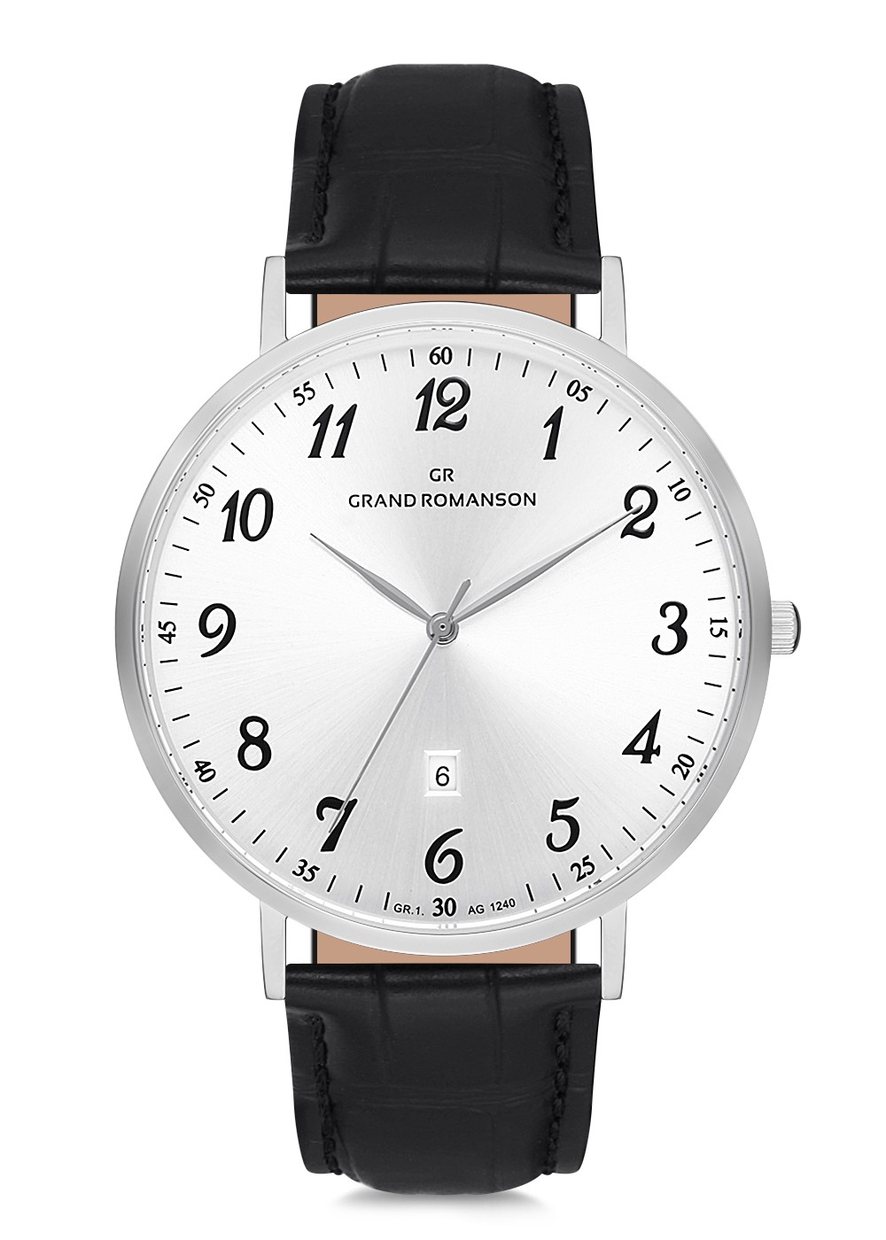 Erkek - Düz - Gümüş - Gümüş - Doğal Deri̇ Kordon - Si̇yah - 3 Atm - Grand Romanson