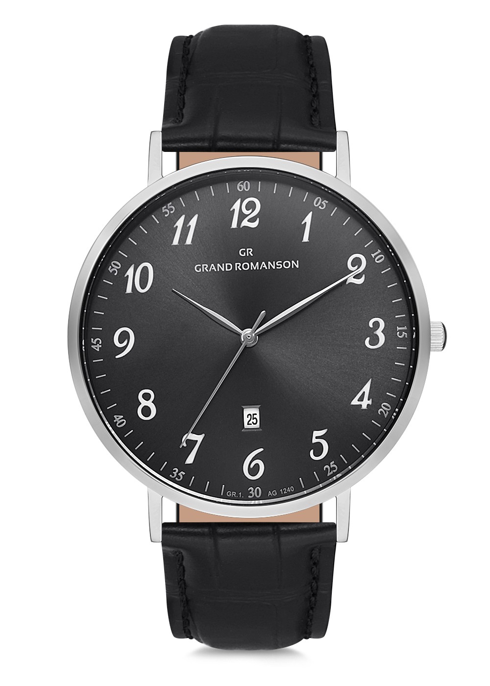Erkek - Düz - Gümüş - Si̇yah - Doğal Deri̇ Kordon - Si̇yah - 3 Atm - Grand Romanson