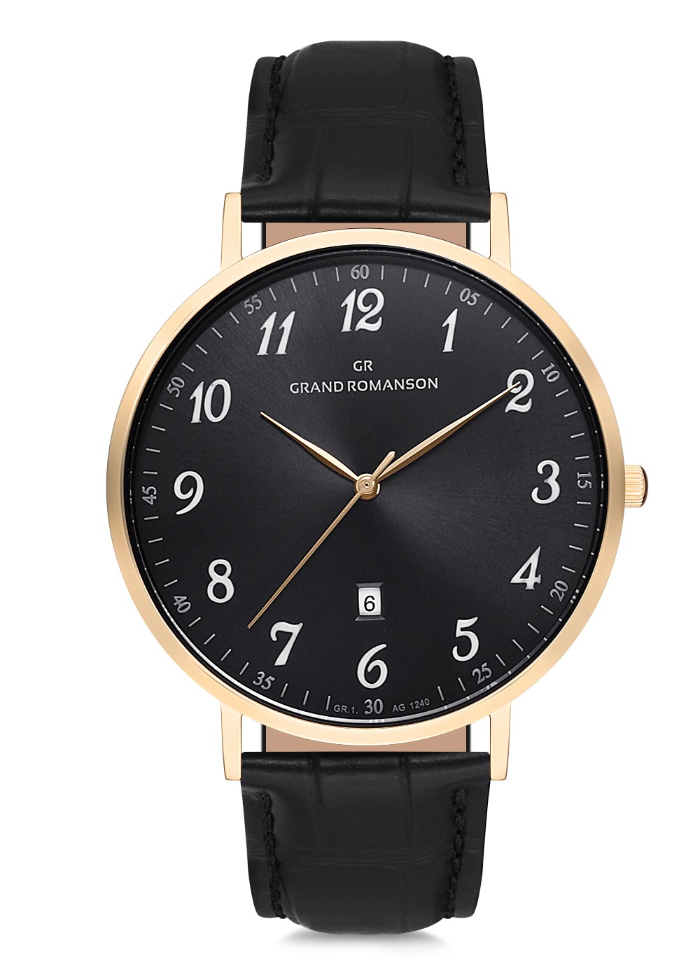 Erkek - Düz - Sari - Si̇yah - Doğal Deri̇ Kordon - Si̇yah - 3 Atm - Grand Romanson