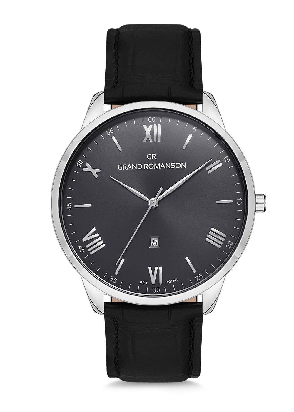 Erkek - Takvi̇mli̇ - Gümüş - Gri̇ - Doğal Deri̇ Kordon - Si̇yah - 3 Atm - Sertleşti̇ri̇lmi̇ş Mi̇neral Cam - Grand Romanson