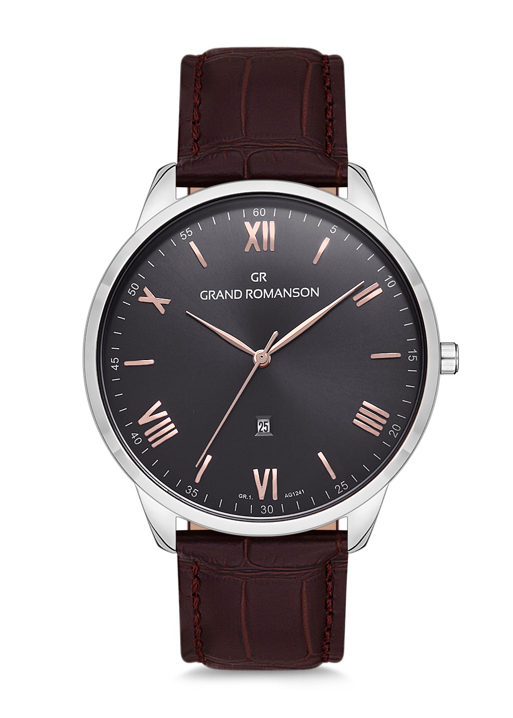 Erkek - Takvi̇mli̇ - Gümüş - Gri̇ - Doğal Deri̇ Kordon - Kahverengi̇ - 3 Atm - Sertleşti̇ri̇lmi̇ş Mi̇neral Cam - Grand Romanson