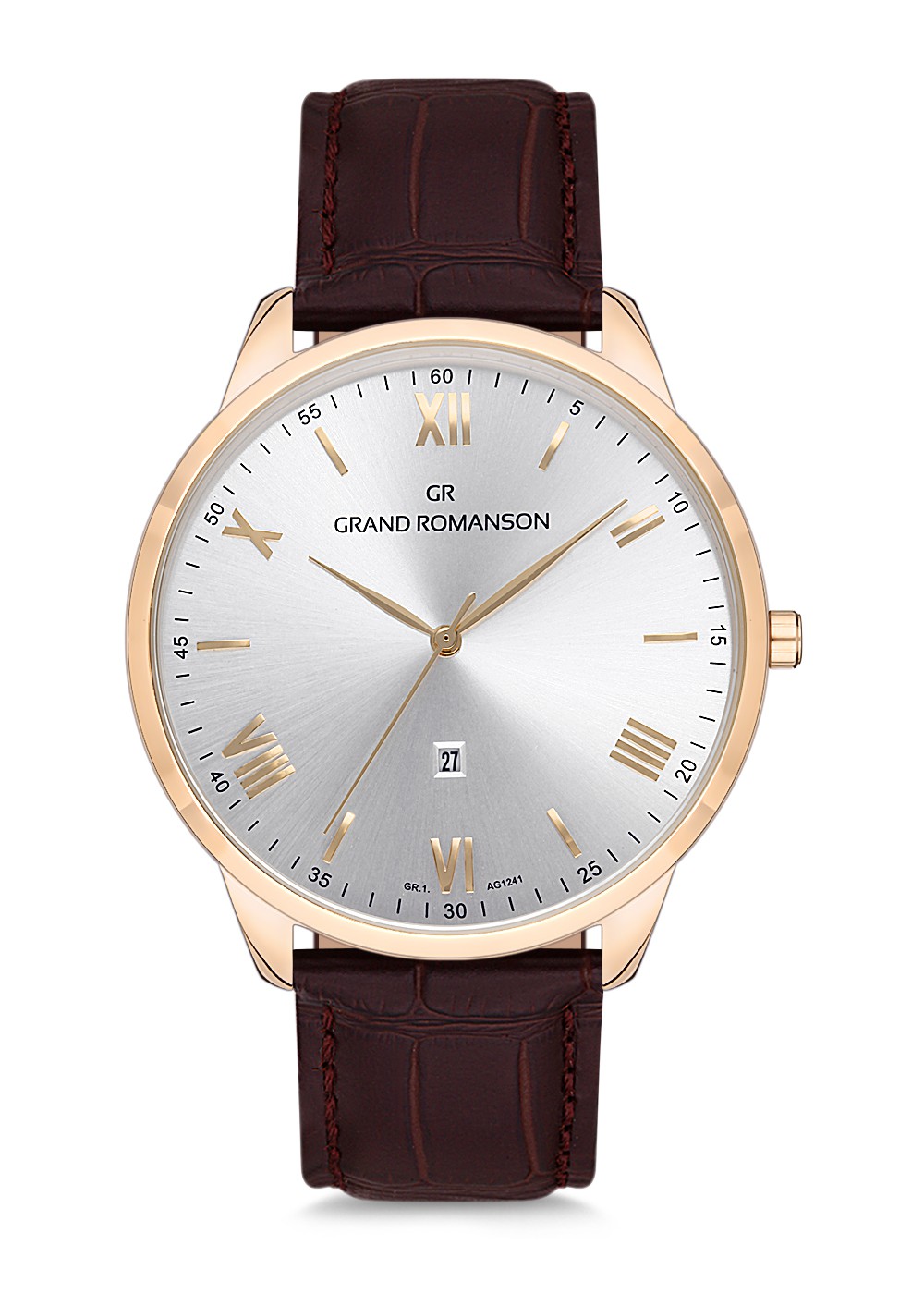 Erkek - Takvi̇mli̇ - Sari - Gümüş - Doğal Deri̇ Kordon - Kahverengi̇ - 3 Atm - Sertleşti̇ri̇lmi̇ş Mi̇neral Cam - Grand Romanson