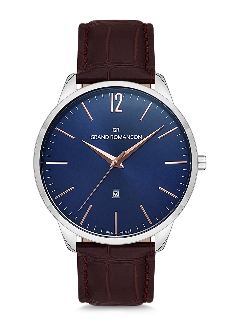 Erkek - Takvi̇mli̇ - Gümüş - Mavi̇ - Doğal Deri̇ Kordon - Kahverengi̇ - 3 Atm - Sertleşti̇ri̇lmi̇ş Mi̇neral Cam - Grand Romanson