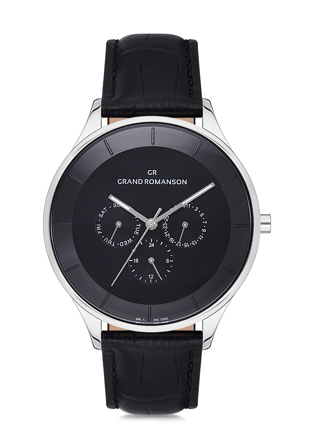 Erkek - Multi̇ Fonksi̇yon - Gümüş - Si̇yah - Doğal Deri̇ Kordon - Si̇yah - 3 Atm - Sertleşti̇ri̇lmi̇ş Mi̇neral Cam - Grand Romanson