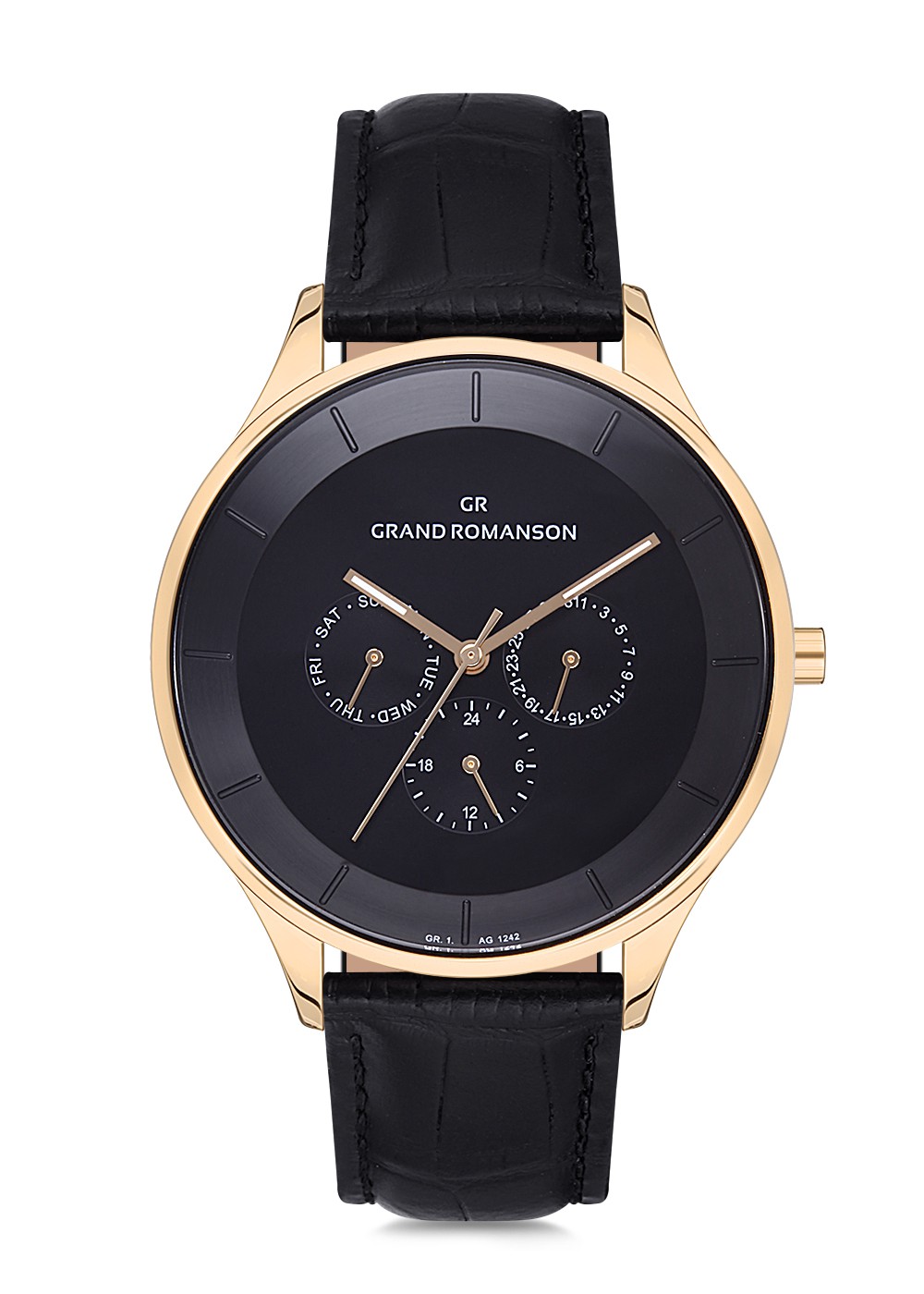 Erkek - Multi̇ Fonksi̇yon - Sari - Si̇yah - Doğal Deri̇ Kordon - Si̇yah - 3 Atm - Sertleşti̇ri̇lmi̇ş Mi̇neral Cam - Grand Romanson