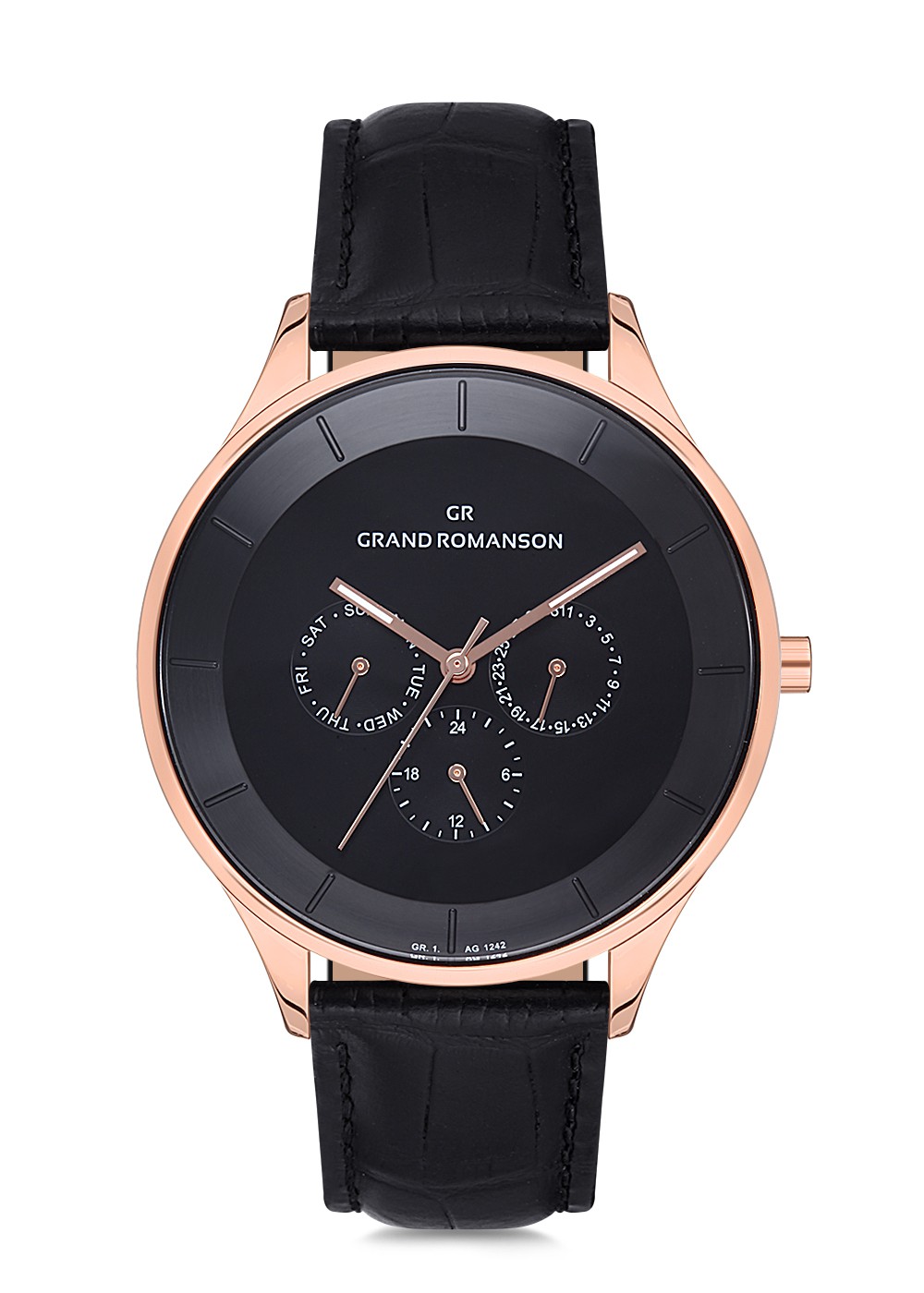 Erkek - Multi̇ Fonksi̇yon - Rose - Si̇yah - Doğal Deri̇ Kordon - Si̇yah - 3 Atm - Sertleşti̇ri̇lmi̇ş Mi̇neral Cam - Grand Romanson