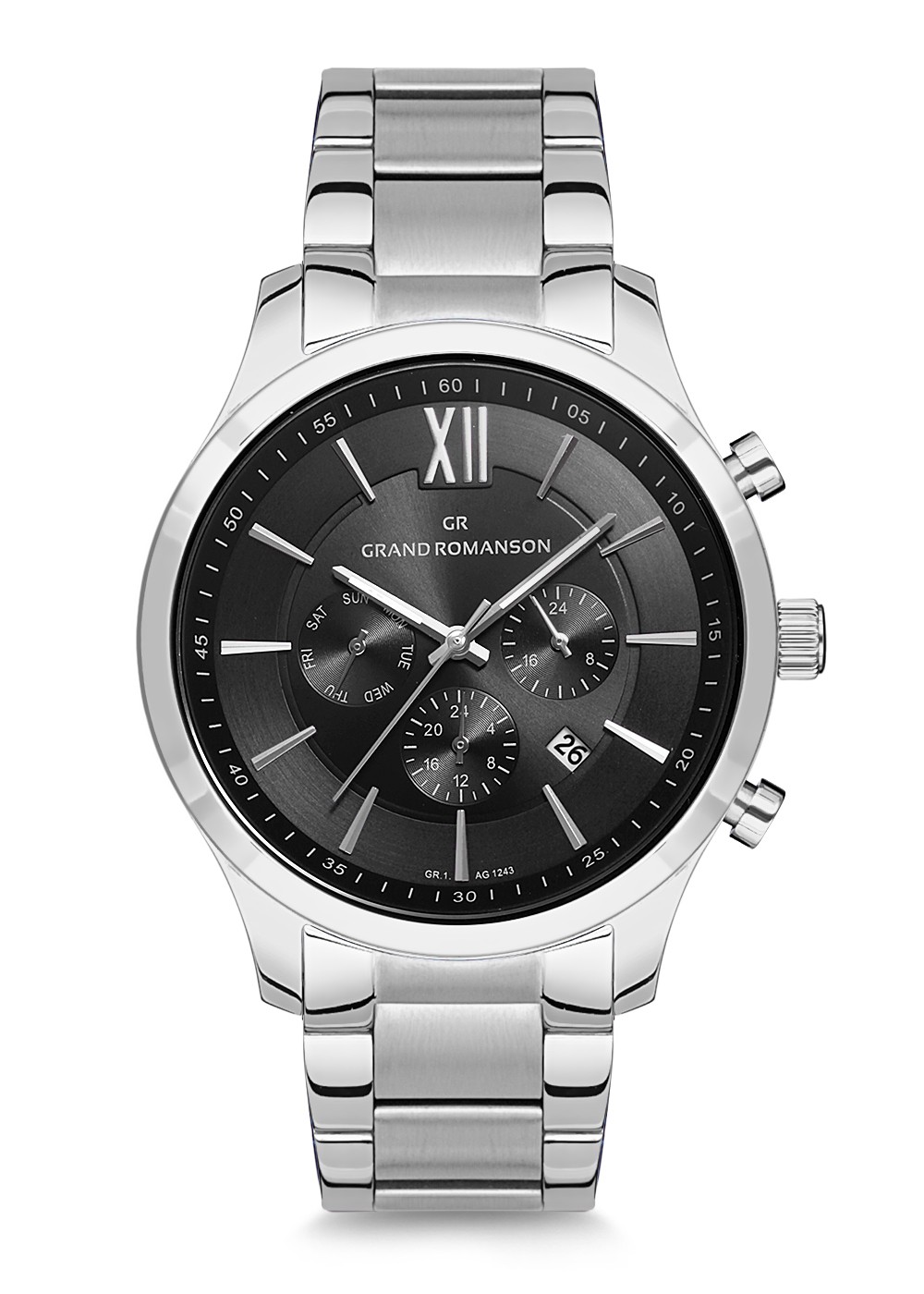 Erkek - Kronometre - Gümüş - Gri̇ - Paslanmaz Masi̇f Çeli̇k - 3 Atm - Sertleşti̇ri̇lmi̇ş Mi̇neral Cam - Grand Romanson