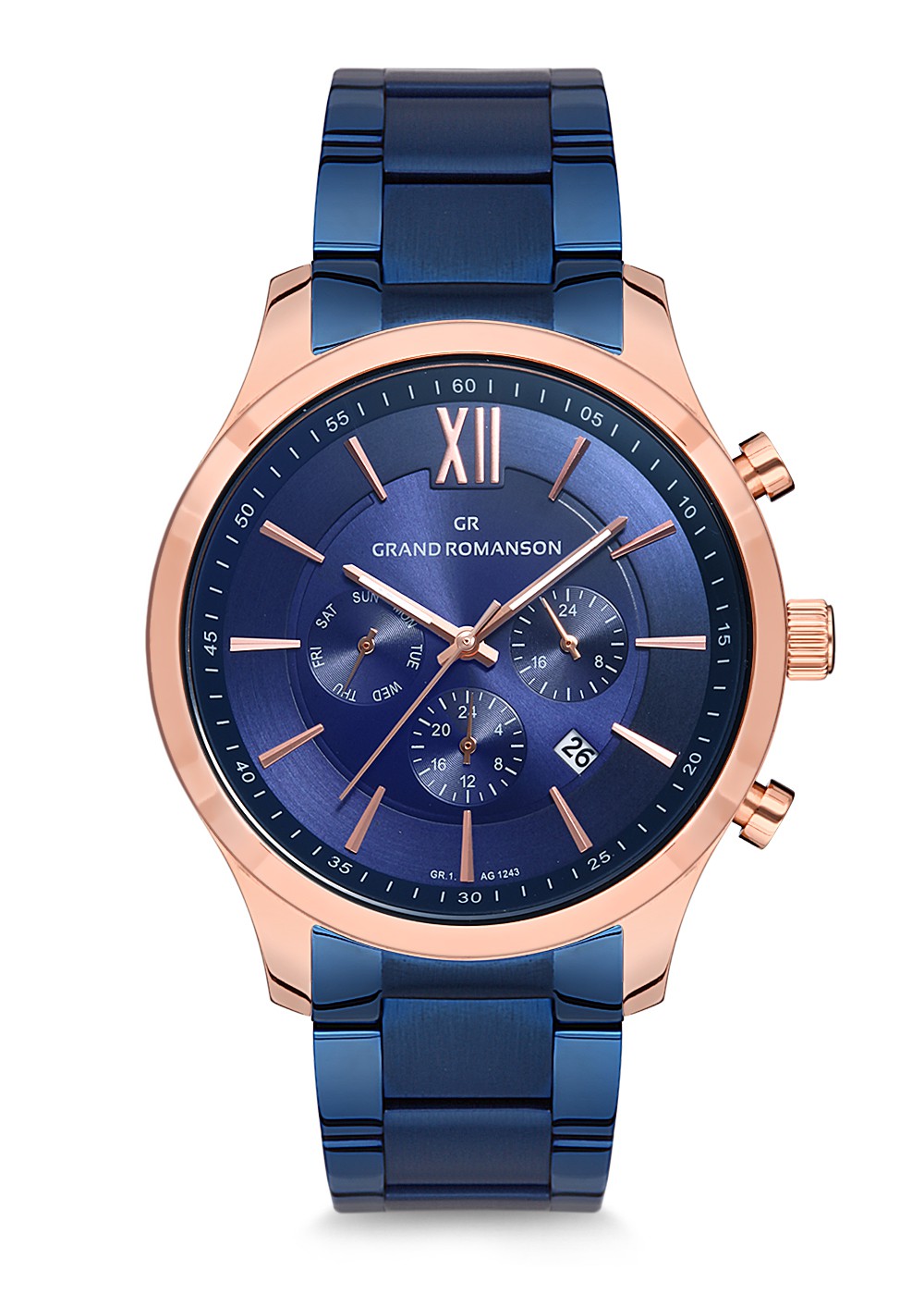Erkek - Kronometre - Rose Mavi̇ - Mavi̇ - Paslanmaz Masi̇f Çeli̇k - 3 Atm - Sertleşti̇ri̇lmi̇ş Mi̇neral Cam - Grand Romanson