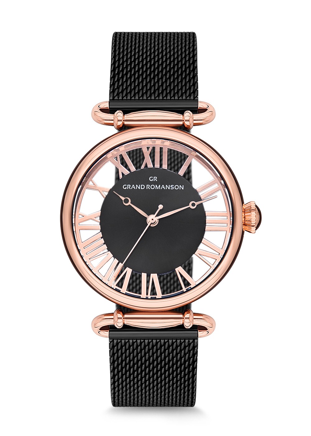 Kadın - Düz - Rose Si̇yah - Si̇yah - Çeli̇k Örme Kordon - 3 Atm - Sertleşti̇ri̇lmi̇ş Mi̇neral Cam - Grand Romanson