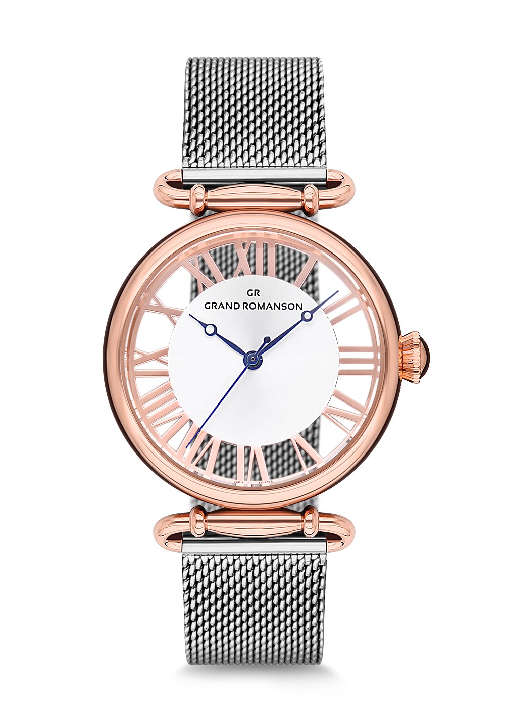 Kadın - Düz - Rose Beyaz - Gümüş - Çeli̇k Örme Kordon - 3 Atm - Sertleşti̇ri̇lmi̇ş Mi̇neral Cam - Grand Romanson