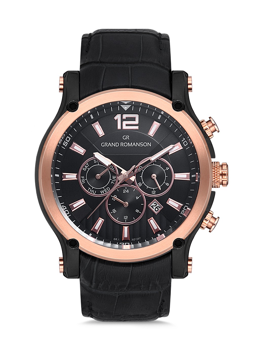 Erkek - Multi̇ Fonksi̇yon - Rose Si̇yah - Si̇yah - Doğal Deri̇ Kordon - Si̇yah - 3 Atm - Sertleşti̇ri̇lmi̇ş Mi̇neral Cam - Grand Romanson - 46
