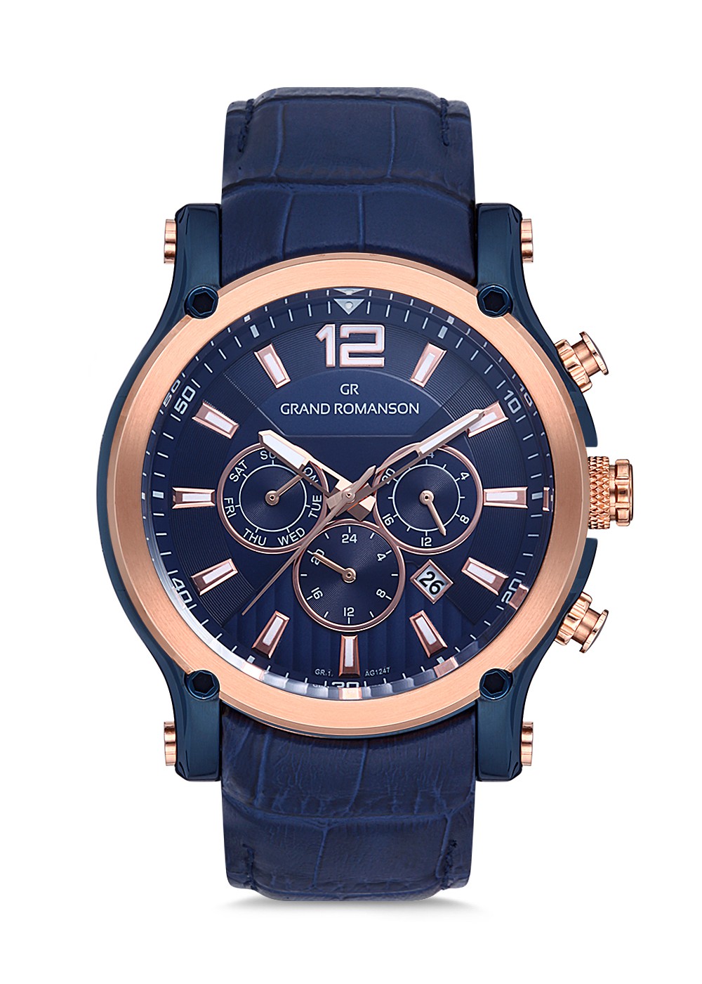 Erkek - Multi̇ Fonksi̇yon - Rose Mavi̇ - Mavi̇ - Doğal Deri̇ Kordon - Mavi̇ - 3 Atm - Sertleşti̇ri̇lmi̇ş Mi̇neral Cam - Grand Romanson