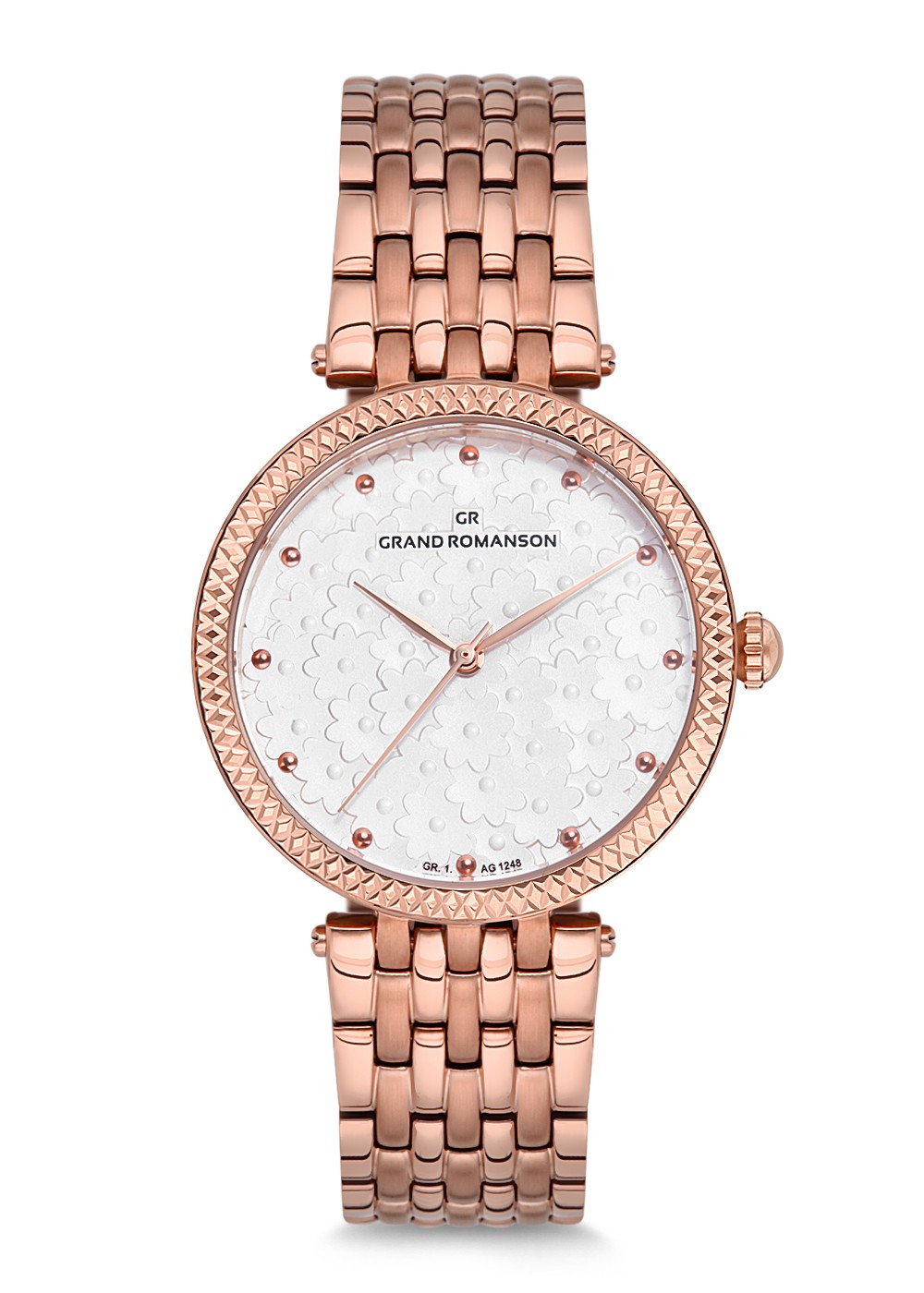 Kadın - Düz - Rose - Gümüş - Paslanmaz Masi̇f Çeli̇k - 3 Atm - Sertleşti̇ri̇lmi̇ş Mi̇neral Cam - Grand Romanson