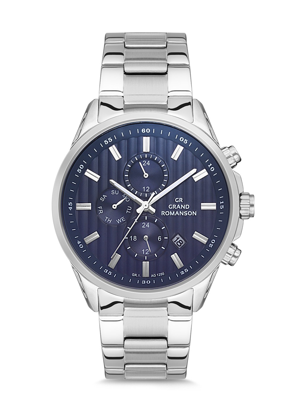Erkek - Multi̇ Fonksi̇yon - Gümüş - Mavi̇ - Paslanmaz Masi̇f Çeli̇k - 3 Atm - Sertleşti̇ri̇lmi̇ş Mi̇neral Cam - Grand Romanson