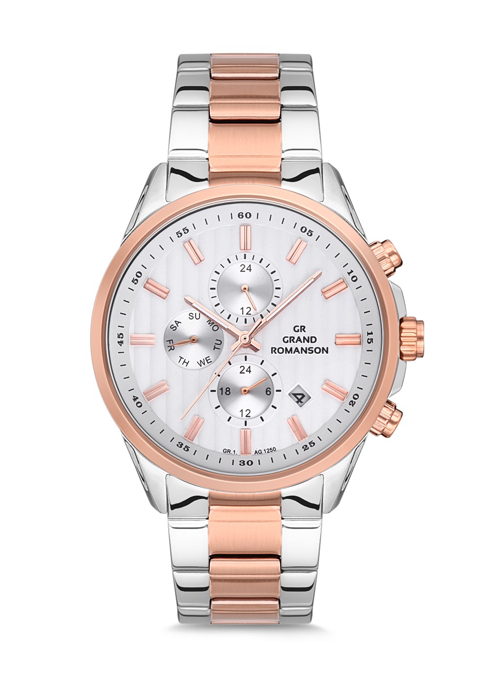 Erkek - Multi̇ Fonksi̇yon - Rose Beyaz - Gümüş - Paslanmaz Masi̇f Çeli̇k - 3 Atm - Sertleşti̇ri̇lmi̇ş Mi̇neral Cam - Grand Romanson