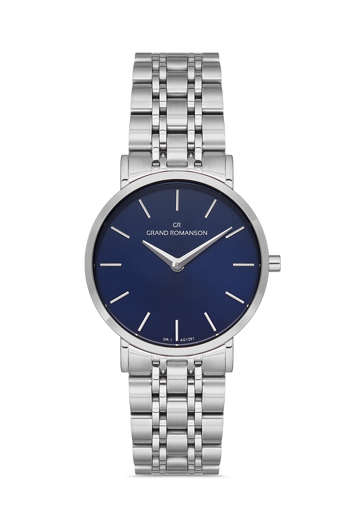 Kadın - Düz - Gümüş - Mavi̇ - Paslanmaz Masi̇f Çeli̇k - 3 Atm - Sertleşti̇ri̇lmi̇ş Mi̇neral Cam - Grand Romanson