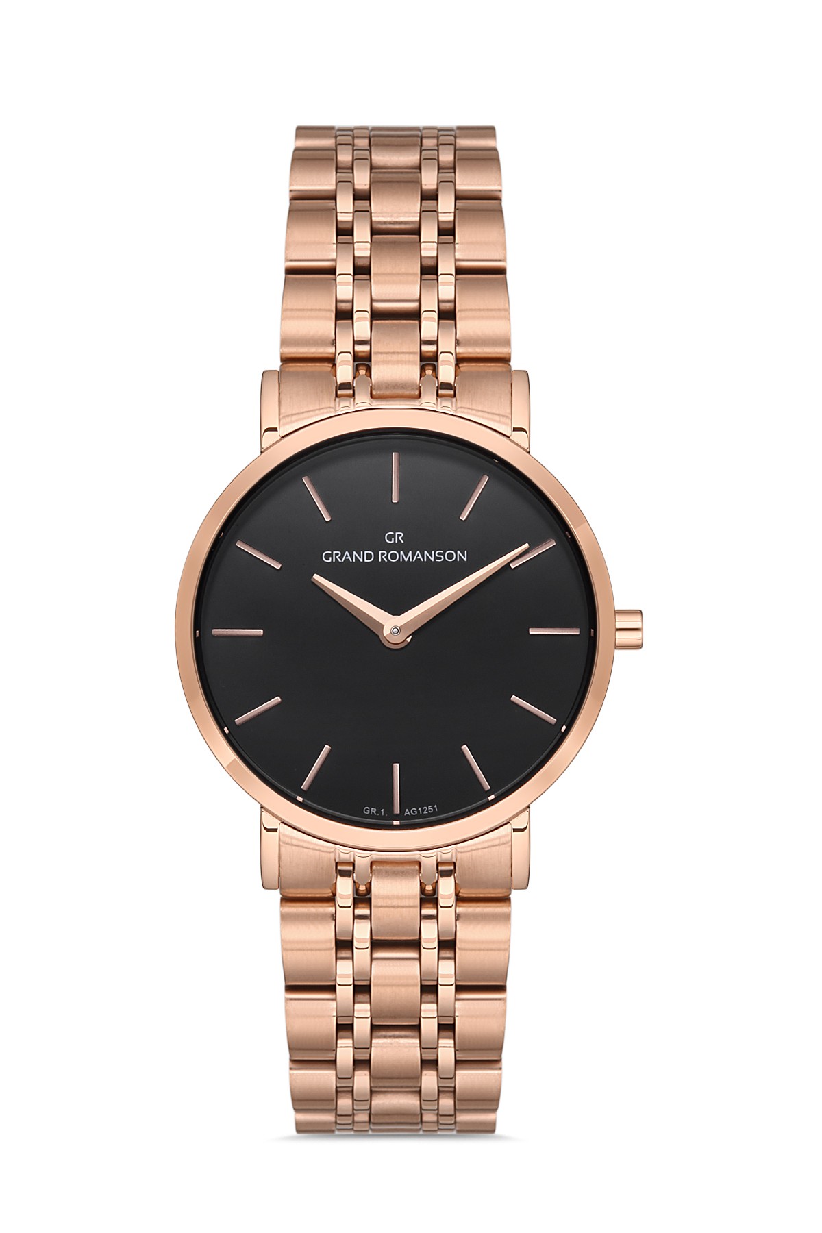 Kadın - Düz - Rose - Si̇yah - Paslanmaz Masi̇f Çeli̇k - 3 Atm - Sertleşti̇ri̇lmi̇ş Mi̇neral Cam - Grand Romanson