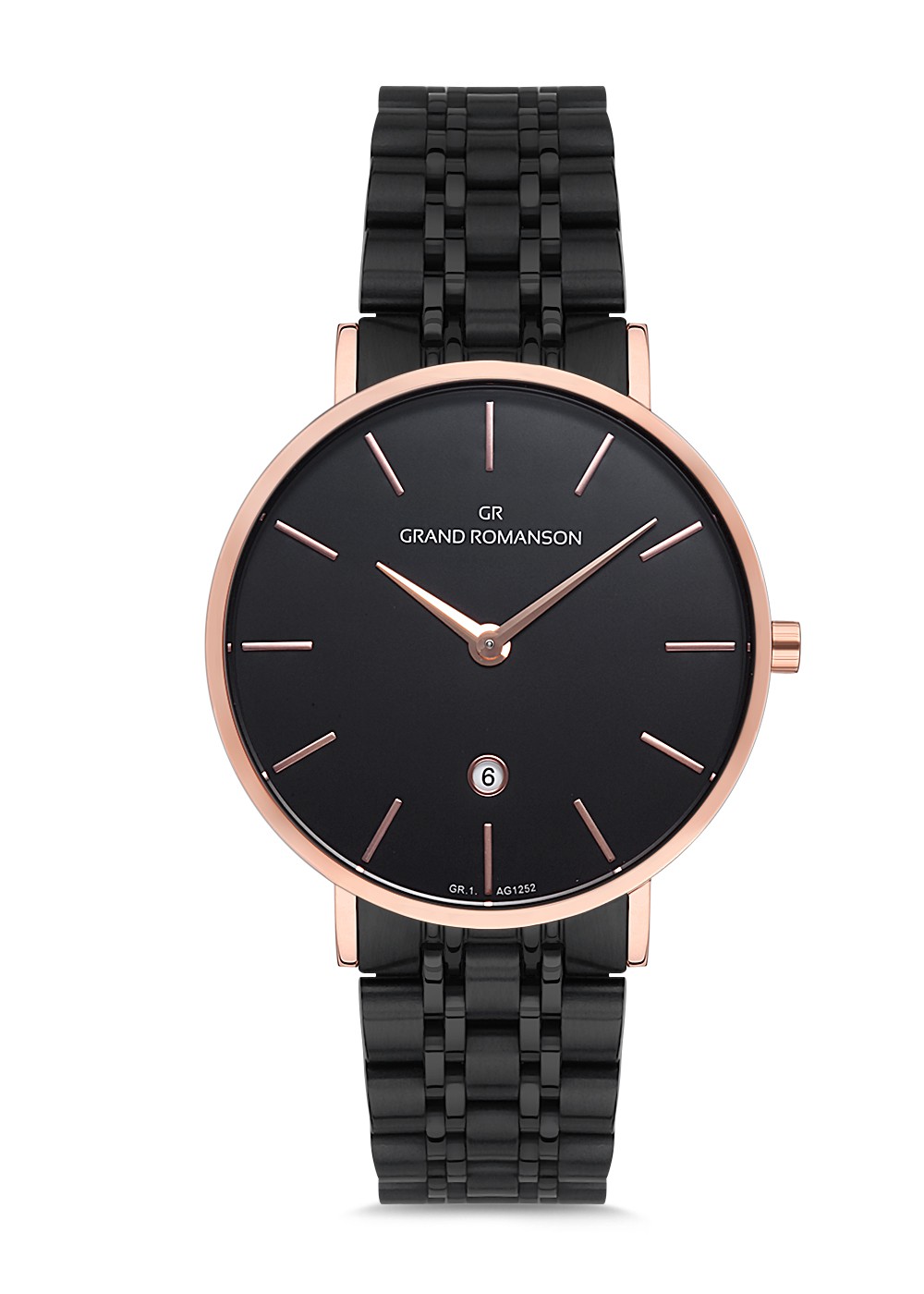 Erkek - Düz - Rose Si̇yah - Si̇yah - Paslanmaz Masi̇f Çeli̇k - 3 Atm - Sertleşti̇ri̇lmi̇ş Mi̇neral Cam - Grand Romanson