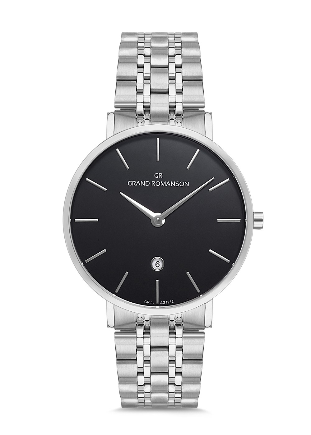 Erkek - Düz - Gümüş - Si̇yah - Paslanmaz Masi̇f Çeli̇k - 3 Atm - Sertleşti̇ri̇lmi̇ş Mi̇neral Cam - Grand Romanson