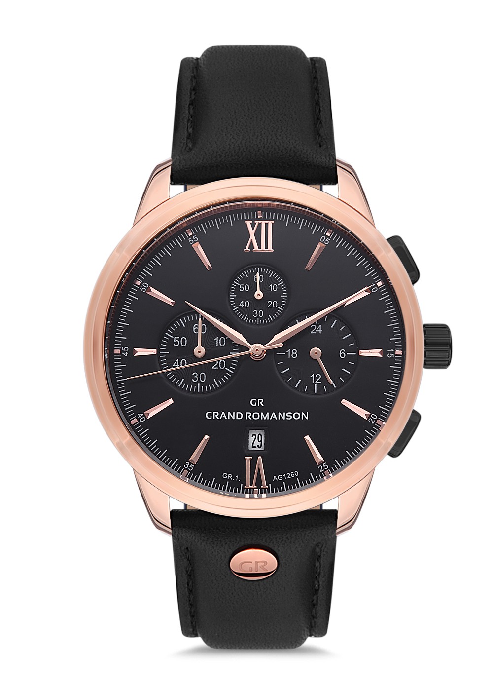 Erkek - Kronometre - Rose - Si̇yah - Doğal Deri̇ Kordon - Si̇yah - 3 Atm - Sertleşti̇ri̇lmi̇ş Mi̇neral Cam - Grand Romanson