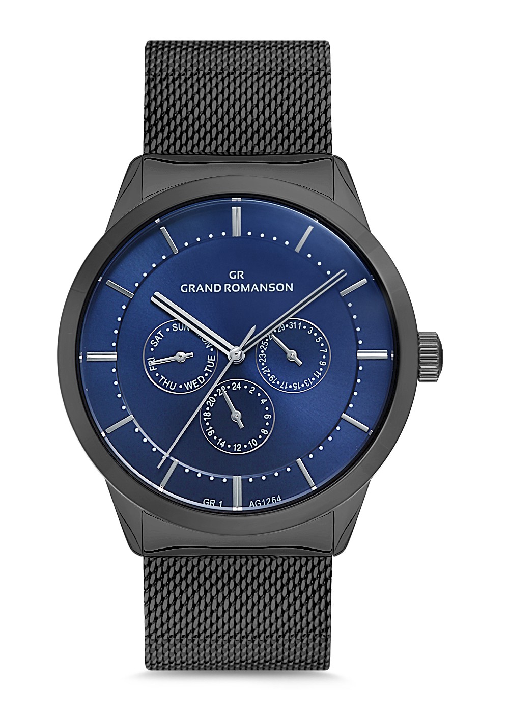 Erkek - Multi̇ Fonksi̇yon - Gun - Mavi̇ - Çeli̇k Örme Kordon - 3 Atm - Sertleşti̇ri̇lmi̇ş Mi̇neral Cam - Grand Romanson