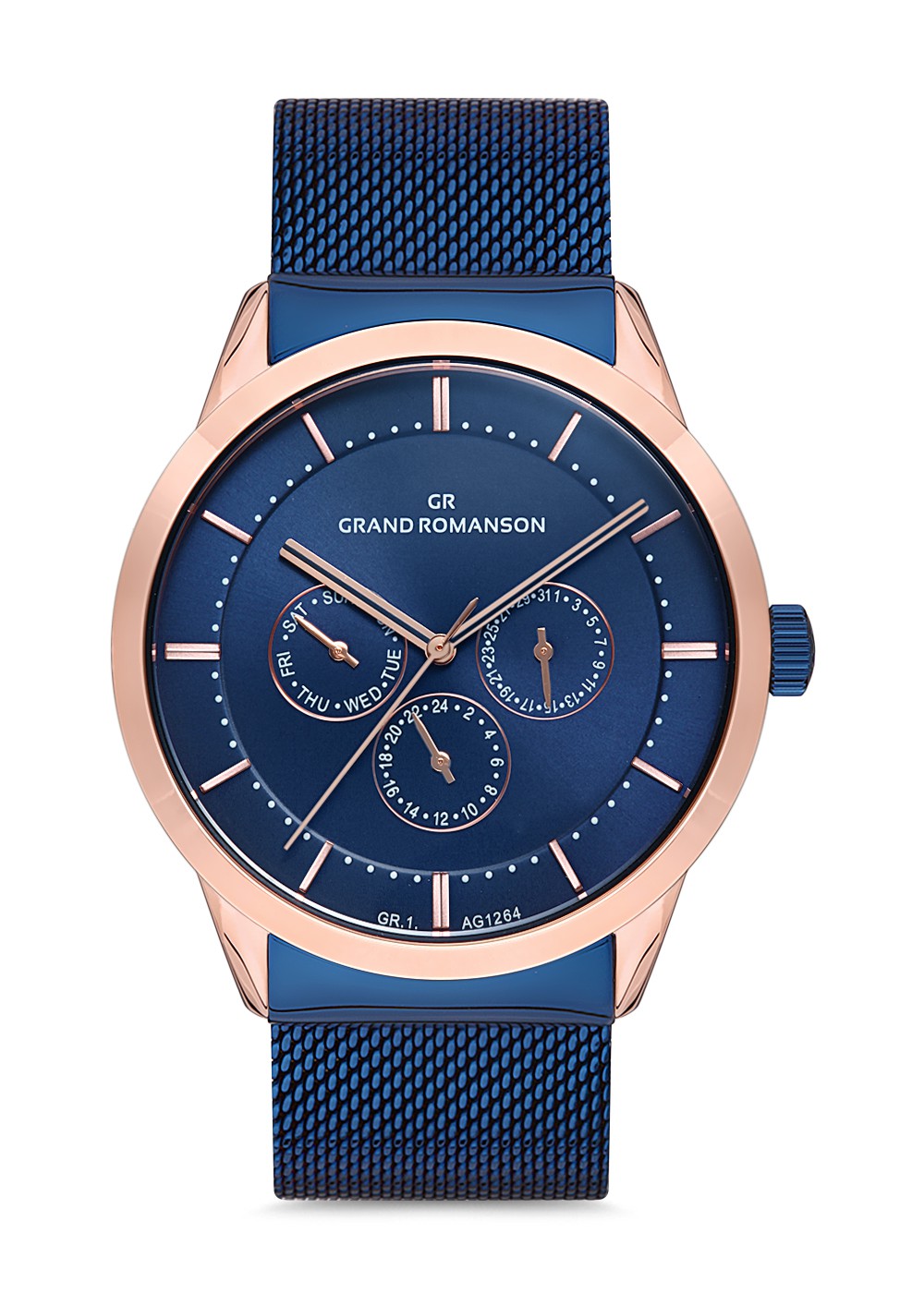 Erkek - Multi̇ Fonksi̇yon - Rose Mavi̇ - Mavi̇ - Çeli̇k Örme Kordon - 3 Atm - Sertleşti̇ri̇lmi̇ş Mi̇neral Cam - Grand Romanson