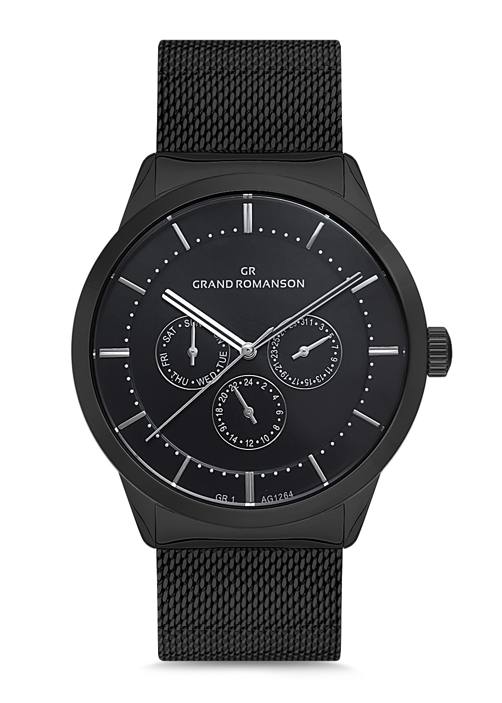 Erkek - Multi̇ Fonksi̇yon - Si̇yah - Si̇yah - Çeli̇k Örme Kordon - 3 Atm - Sertleşti̇ri̇lmi̇ş Mi̇neral Cam - Grand Romanson