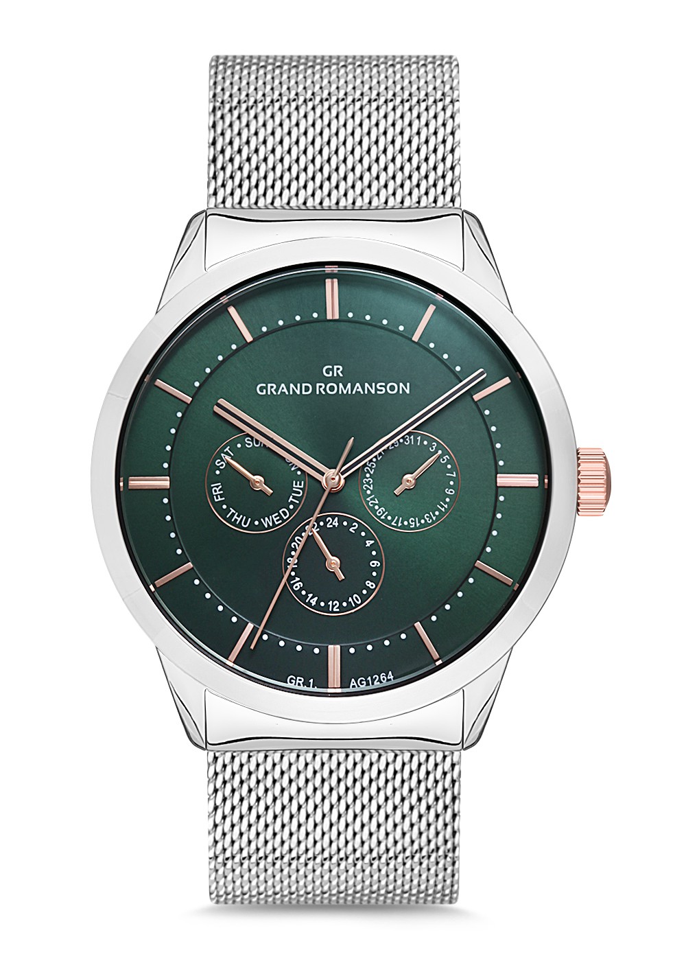 Erkek - Multi̇ Fonksi̇yon - Gümüş - Yeşi̇l - Çeli̇k Örme Kordon - 3 Atm - Sertleşti̇ri̇lmi̇ş Mi̇neral Cam - Grand Romanson