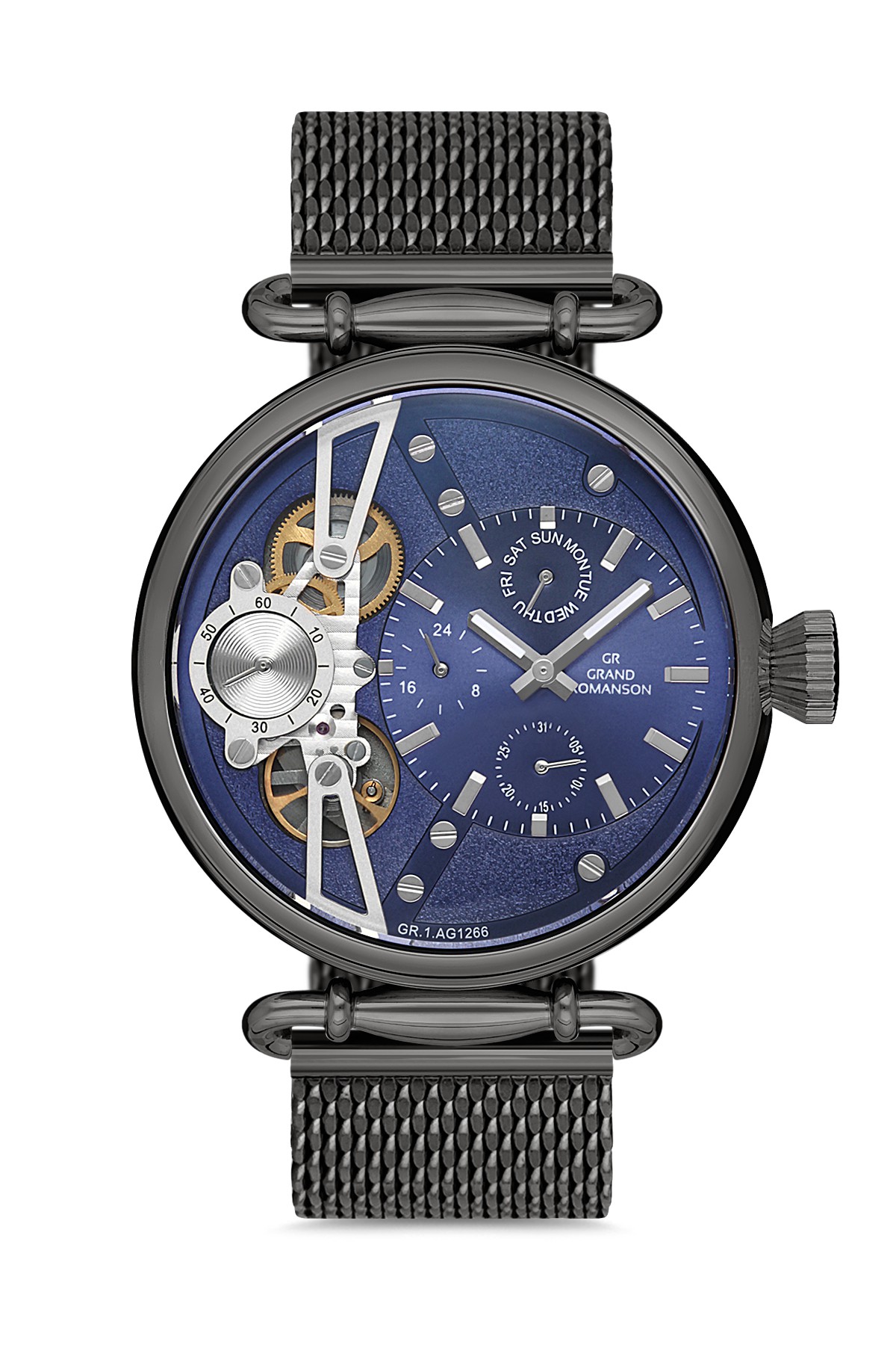 Erkek - Multi̇ Fonksi̇yon - Gun - Mavi̇ - Çeli̇k Örme Kordon - 3 Atm - Sertleşti̇ri̇lmi̇ş Mi̇neral Cam - Grand Romanson