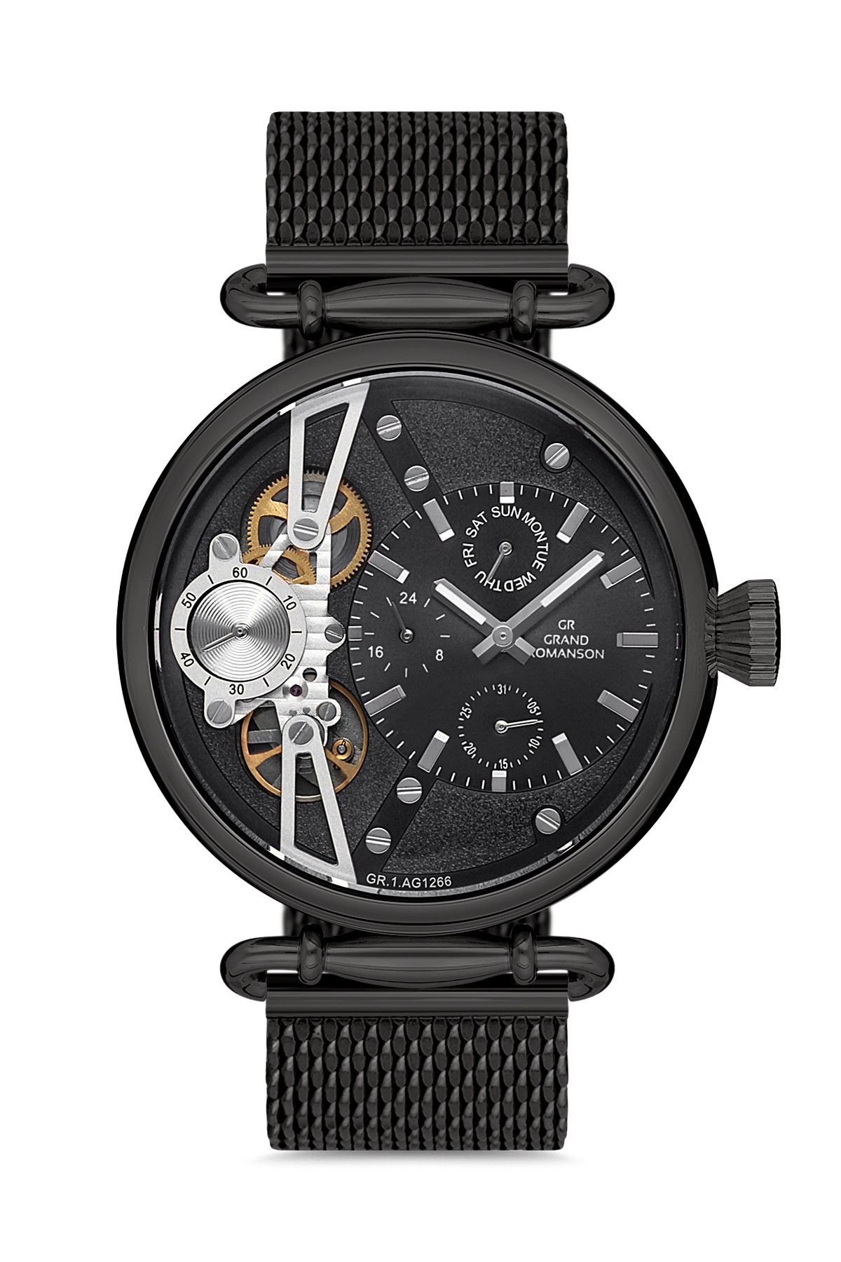 Erkek - Multi̇ Fonksi̇yon - Si̇yah - Si̇yah - Çeli̇k Örme Kordon - 3 Atm - Sertleşti̇ri̇lmi̇ş Mi̇neral Cam - Grand Romanson