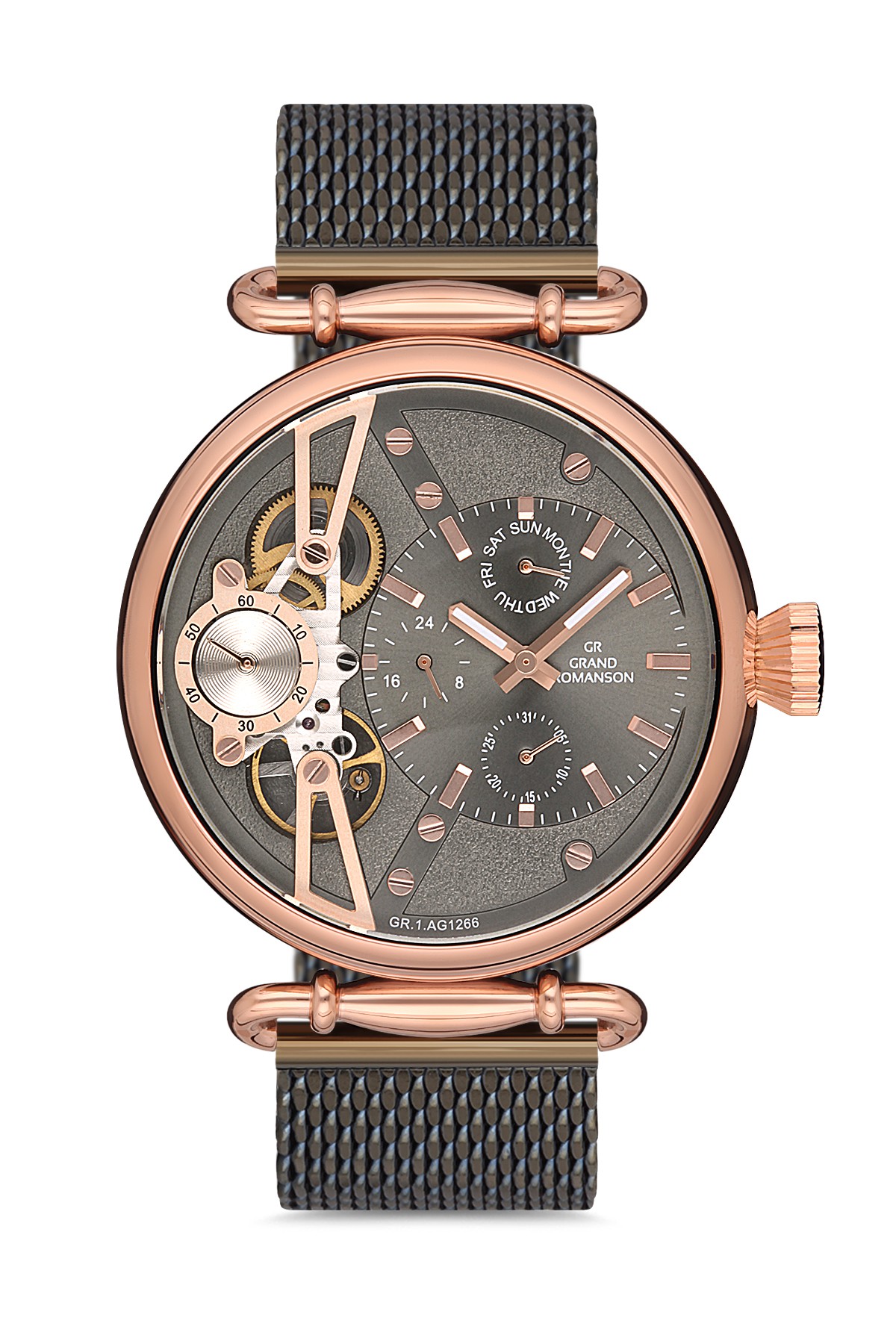 Erkek - Multi̇ Fonksi̇yon - Rose - Yeşi̇l - Çeli̇k Örme Kordon - 3 Atm - Sertleşti̇ri̇lmi̇ş Mi̇neral Cam - Grand Romanson