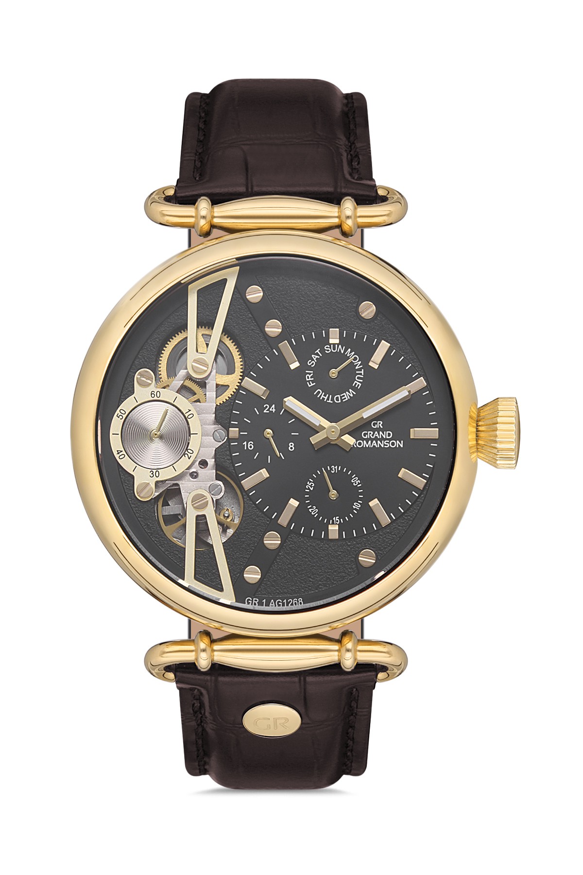 Erkek - Multi̇ Fonksi̇yon - Sari - Gri̇ - Doğal Deri̇ Kordon - Kahverengi̇ - 3 Atm - Sertleşti̇ri̇lmi̇ş Mi̇neral Cam - Grand Romanson