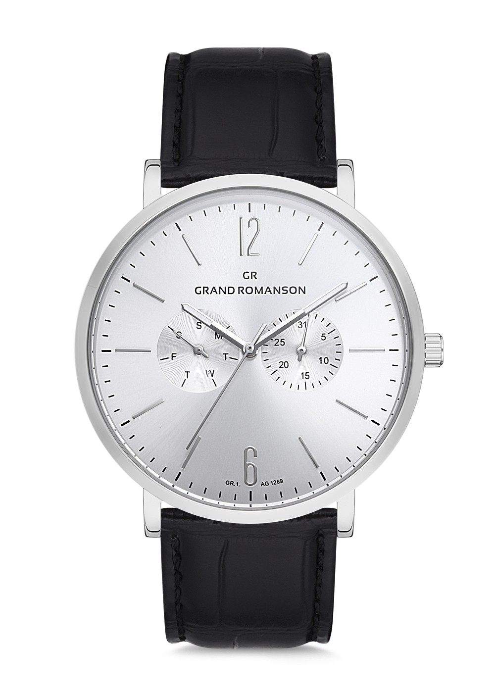Erkek - Multi̇ Fonksi̇yon - Gümüş - Gümüş - Doğal Deri̇ Kordon - Si̇yah - 3 Atm - Sertleşti̇ri̇lmi̇ş Mi̇neral Cam - Grand Romanson
