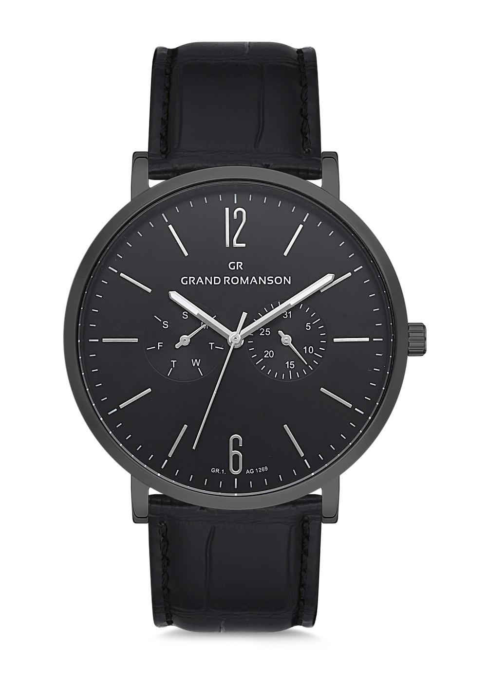 Erkek - Multi̇ Fonksi̇yon - Si̇yah - Si̇yah - Doğal Deri̇ Kordon - Si̇yah - 3 Atm - Sertleşti̇ri̇lmi̇ş Mi̇neral Cam - Grand Romanson