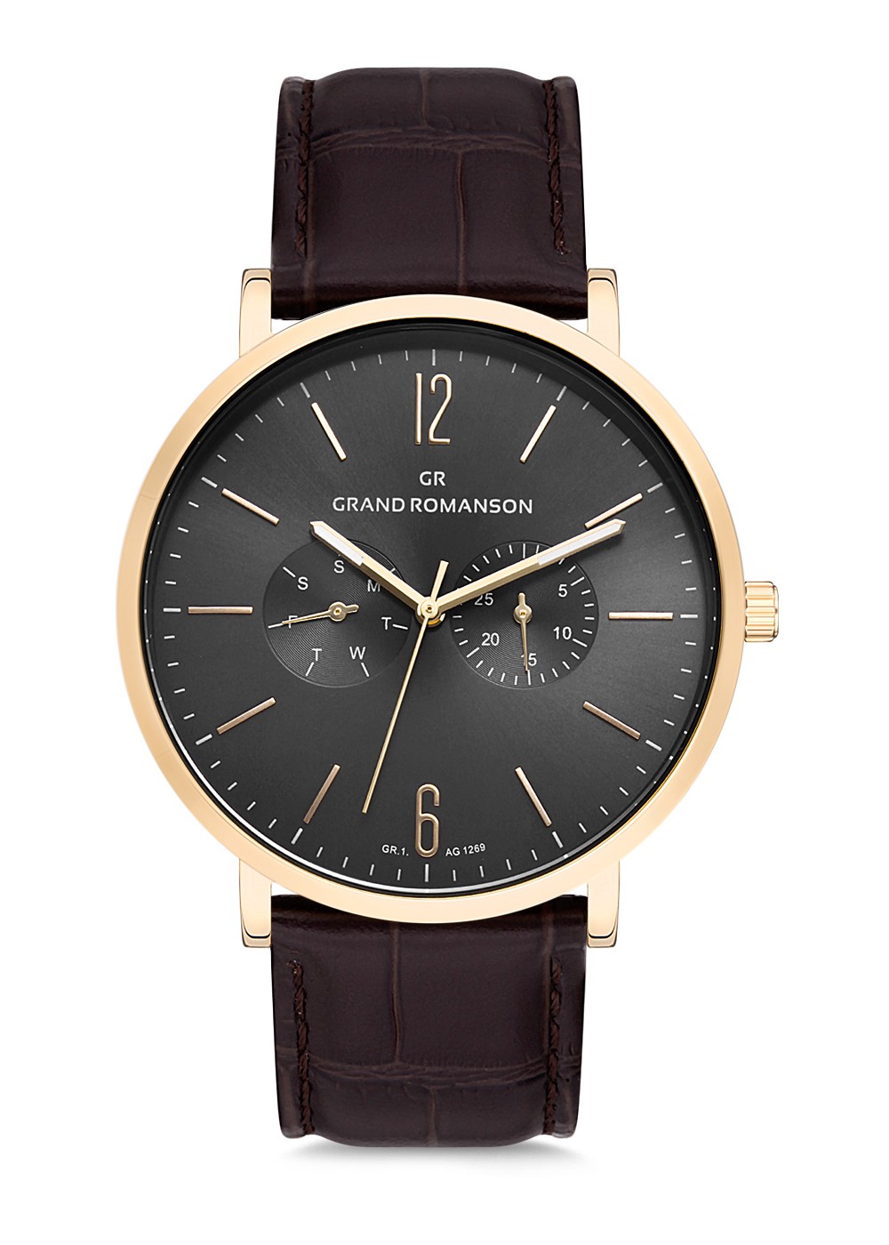 Erkek - Multi̇ Fonksi̇yon - Sari - Gri̇ - Doğal Deri̇ Kordon - Kahverengi̇ - 3 Atm - Sertleşti̇ri̇lmi̇ş Mi̇neral Cam - Grand Romanson